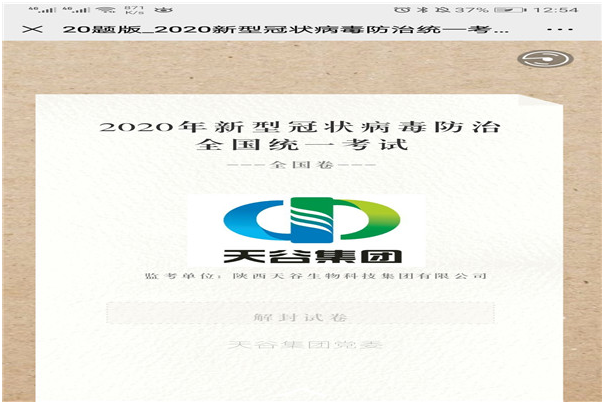 為進一步加強新型冠狀病毒感染的肺炎防護知識宣傳力度,培養(yǎng)和提高黨員干部預(yù)防新型冠狀病毒能力,豐富員工假期生活。天谷集團黨委在全體黨員范圍內(nèi),采取微信等非接觸方式,組織開展了疫情防控知識網(wǎng)絡(luò)競賽活動。
