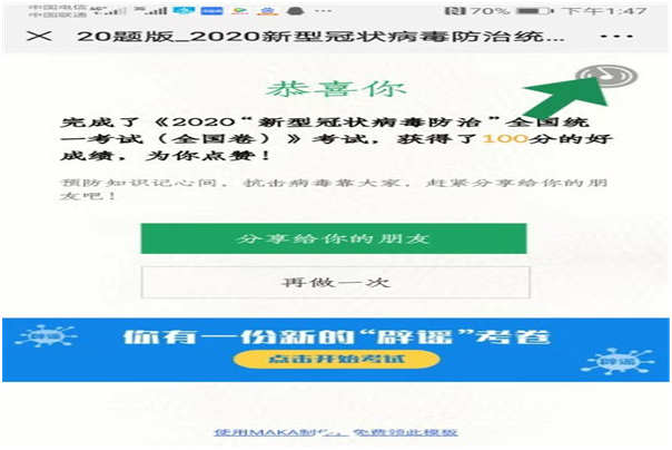 公司紀委書記陳亞軍以《新型冠狀病毒肺炎防控知識手冊》為參考,針對易混淆的、關(guān)鍵的疫情防控知識,進行考試題目設(shè)計,借助微信平臺發(fā)放答題鏈接,呼吁全體黨員干部主動學(xué)習(xí)防疫知識,積極參與競賽答題。短短半天時間,天谷集團50余名黨員參與答題,95%獲得100分以上的好成績。疫情就是責任,防控就是命令,在這特殊時期,通過此次知識競賽活動的開展,全體黨員干部了解當前的疫情現(xiàn)狀,學(xué)習(xí)疫情相關(guān)防護知識,起到了引領(lǐng)大家正確認識疫情,防控疫情的作用。